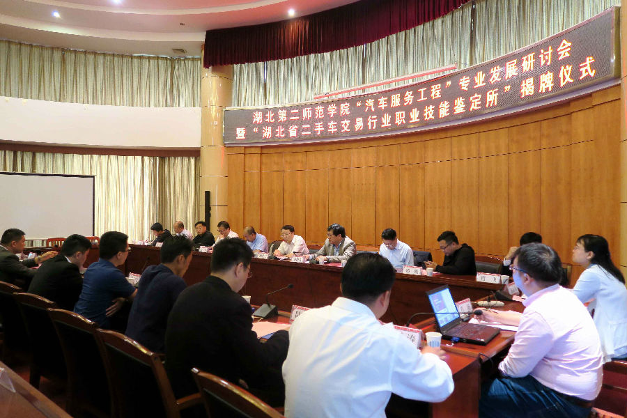 “汽车服务工程”专业发展研讨会暨“湖北省二手车交易行业职业技能鉴定所”揭牌仪式在学校举行