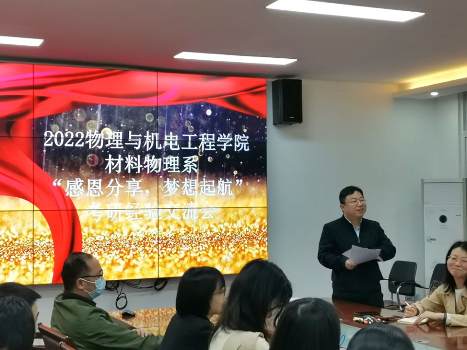 本网讯(通讯员 柳宇轩 摄影员 柳宇轩)4月15日晚6时yl6809永利官网(以下简称yl6809永利官网)于一号会议室开展材料物理系“感恩分享,梦想起航”考研经验交流会,邀请成功考取研究生的11位18级学长学姐为材料物理系同学分享考研心得。副院长李杰,系主任汪川惠,专业负责人陶军晖,杨辉,辅导员刘文君、章缙以及各级材料物理学生参加会议。会议由汪川惠主持。