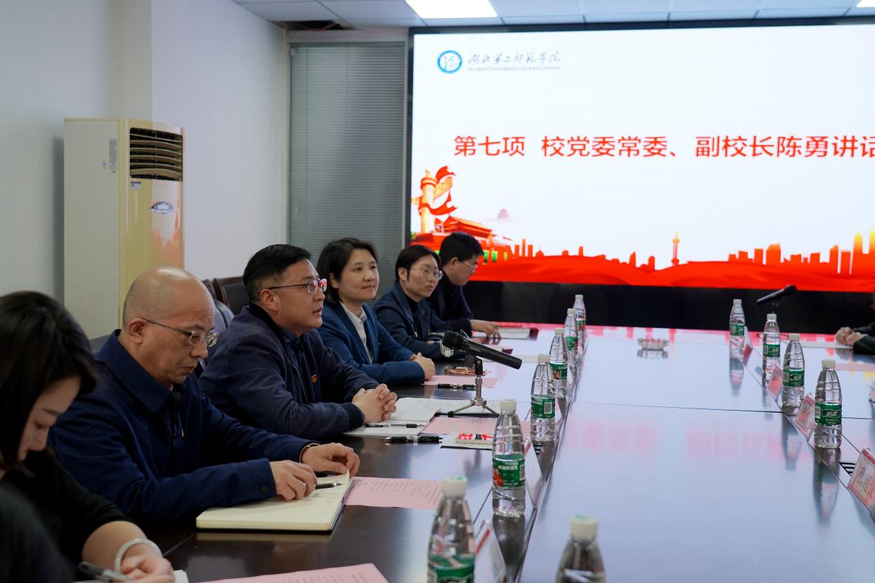 陈勇做总结讲话,他对“优师”学生党支部全体党员提出三点建议:一是希望党支部强化政治担当,提升政治能力,带头担当作为;二是弘扬雷锋精神,深刻把握雷锋精神的时代内涵,更好发挥党员、干部模范带头作用;三是严格作风要求,在孜孜不倦中提升综合素质,努力成为高素质专业化创新型的“四有”好老师。