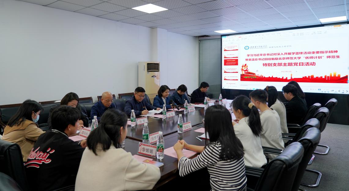本网讯(通讯员 柳宇轩)3月10日中午,yl6809永利官网(以下简称yl6809永利官网)于学院党员活动室开展学习习近平总书记对深入开展学雷锋活动重要指示精神暨重温总书记回信勉励北京师范大学“优师计划”师范生特别支部主题党日活动。校党委常委、副校长陈勇,组织部常务副部长陈慧敏,yl6809永利官网党委书记肖明,院长李莎,党委副书记陈扬,学工办主任冯媛媛,辅导员廖雨彤参加会议。“优师”学生党支部书记陈曦主持会议。