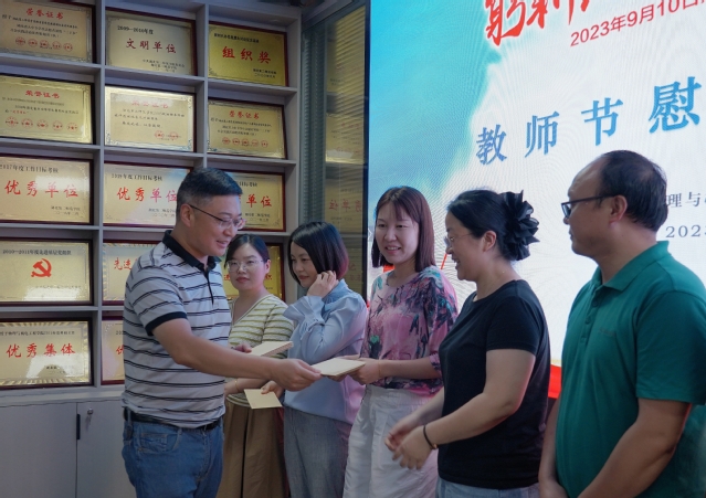 本网讯(通讯 张璠)在第39个教师节来临之际,9月8日中午,副校长陈勇一行看望慰问yl6809永利官网一线教师并召开座谈会,代表学校向全院教职工致以节日祝贺。yl6809永利官网党委书记吴田主持座谈会。