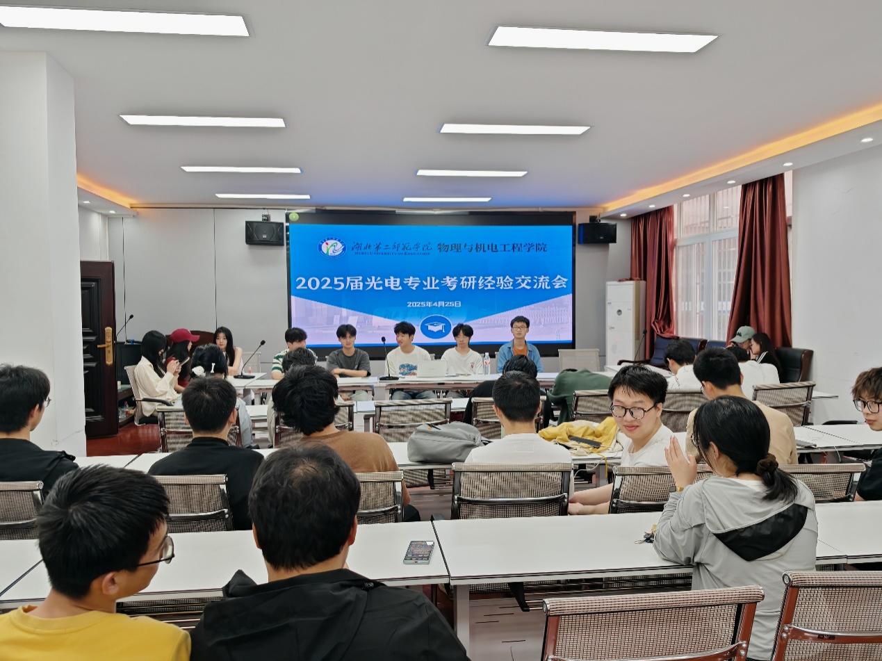 本网讯(通讯员 王茁)2025 年 4 月 25 日,yl6809永利官网光电信息科学与工程专业在学院会议室成功举办了考研经验分享会。光电专业学生和21、22、23级三个年级的班主任王茁老师、王筠老师、刘丹老师参加了分享会。
