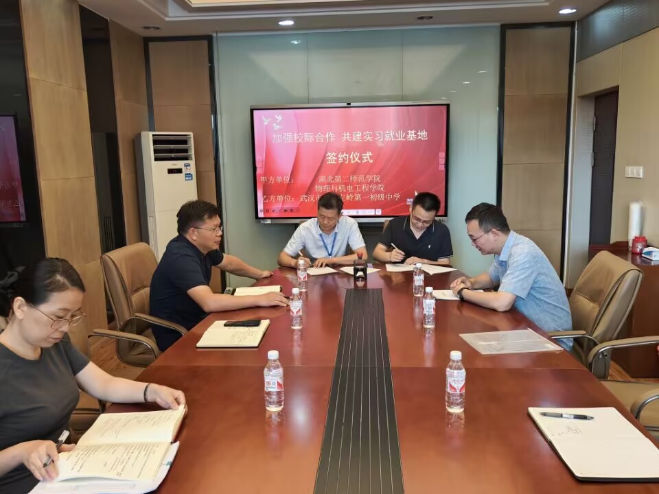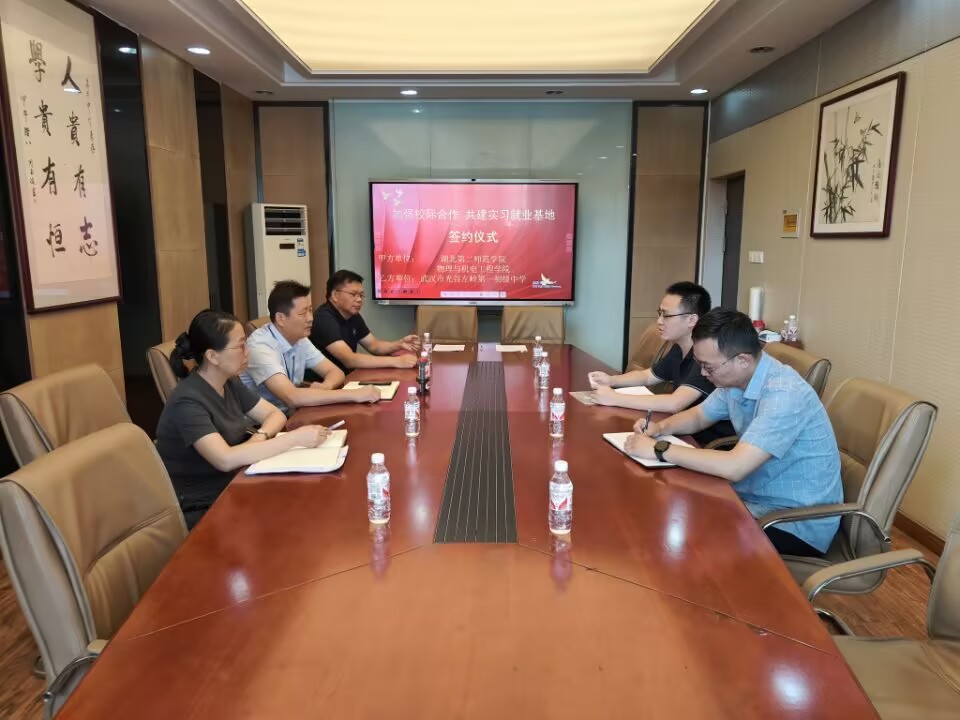 本网讯(通讯员 谈伟伟)为加强物理与天文系与光谷片区中小学校的合作与交流,同时拓宽本系的实习基地校。6月25日,yl6809永利官网教学副院长张祖满、物理与天文系系主任谈伟伟一行前往武汉市左岭第一初级中学进行考察,并与其校长袁新军及书记彭新海就实习基地的建设及学生就业和校校合作展开了深入交流。